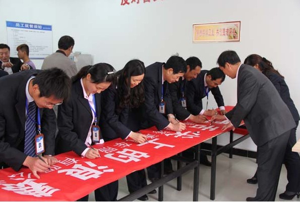 儀式上,黨委書記劉元祥倡導(dǎo)厲行節(jié)儉,就餐清盤,號召干部職工養(yǎng)成文明用餐的好習(xí)慣,并通過不斷堅持,把文明之風(fēng)傳播下去,落實到日常工作中去,在公司黨委的大力倡導(dǎo)和精心組織下,60余名就餐職工積極地在橫幅上簽下了自己的名字,表達了對這次行動的大力支持。