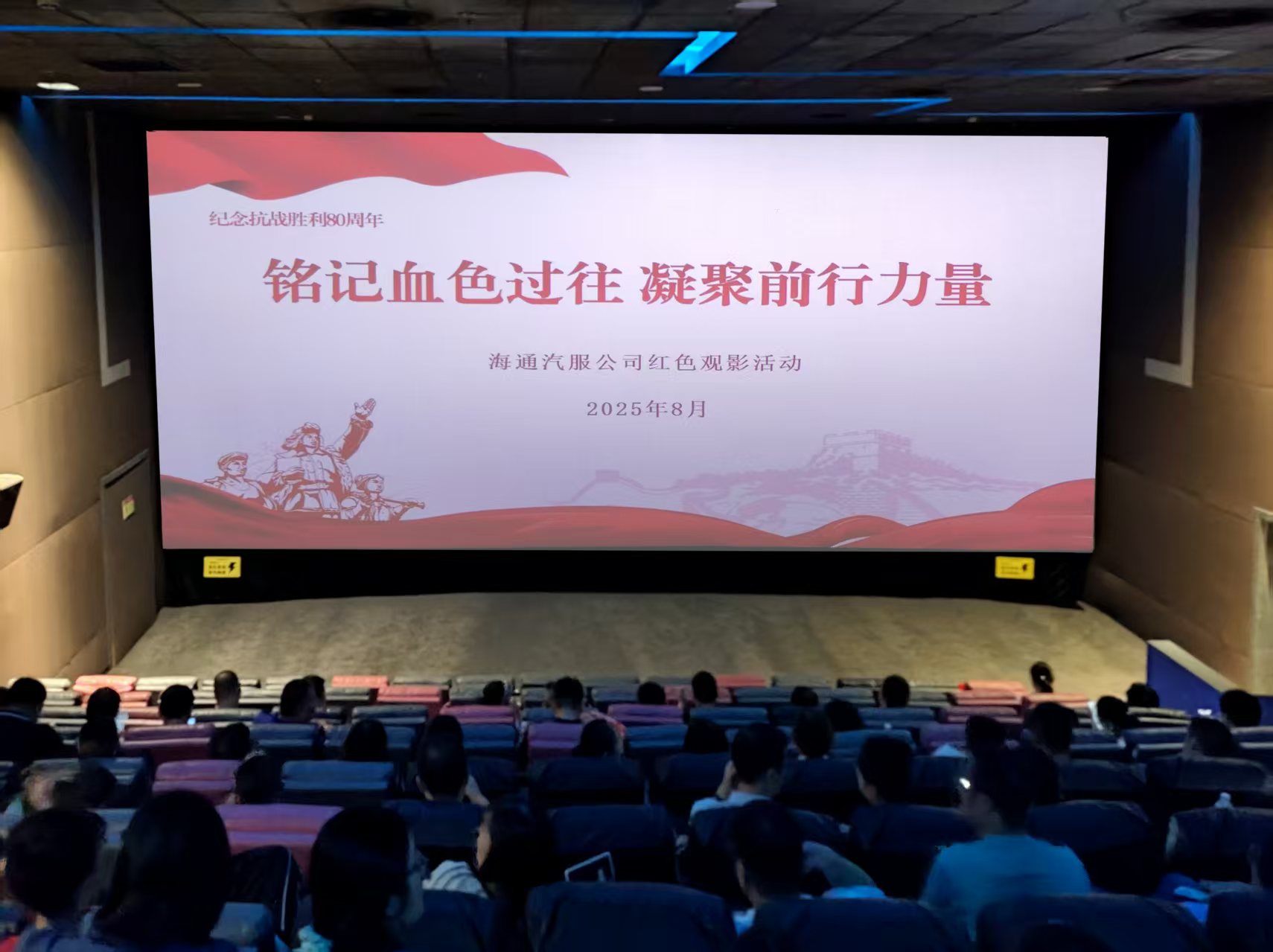 為紀(jì)念中國(guó)人民抗日戰(zhàn)爭(zhēng)暨世界反法西斯戰(zhàn)爭(zhēng)勝利80周年,深化愛國(guó)主義教育,8月15日,海通汽車服務(wù)公司組織開展"銘記血色過往、凝聚前行力量"主題紅色觀影活動(dòng),通過觀影引導(dǎo)干部職工重溫抗戰(zhàn)歷史,傳承紅色基因。